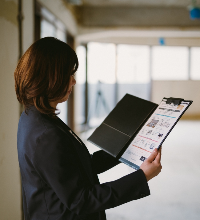 通勤・通学ルートを歩いたり、周辺施設や建設中の建物を確認したり、実際に生活することを考えながら対象物件の周辺環境を調査します。また、対象物件の前所有者へのヒアリングや仕入れ担当者の目視確認により、室内の日当たりや音の聞こえ方を調査。室内で感じた課題はリノベーション工事によって可能な限り解消します。現地で直接見聞きしなければ得られない情報をキャッチし、商品づくりに活かしています。