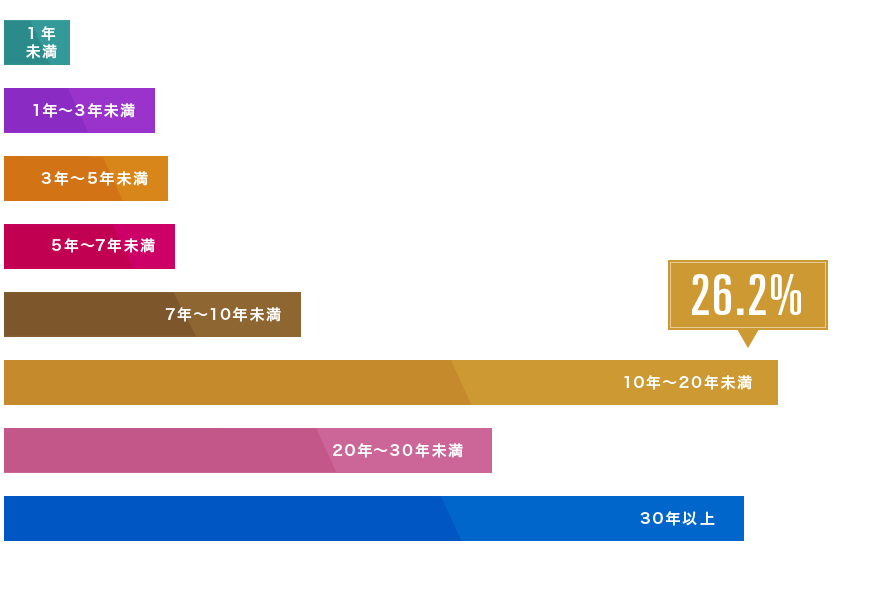 10年〜20年が最多(26.2%)となりました。「読書」「映画鑑賞」「音楽鑑賞」「グルメ」「ショッピング」といったお手軽にできる趣味は長年続けている方が多く、30代では10年以上、50代では30年以上と答えた方が多数を占めています。逆に「スポーツ」「カメラ・写真」「園芸・ガーデニング」のように趣味として始めるために手間がかかるものについては、年代を問わず最近始めた方から長年継続している方まで散見されました。「DIY・リフォーム」のように流行りだした年代が直近のものについては、若年層を中心に趣味として挙げられていましたが、継続年数は少ないようです。