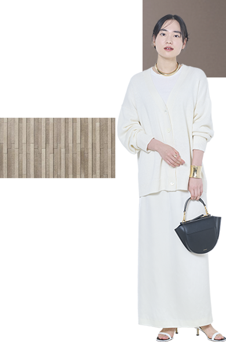 美しく、そして的確に、ポイントを押さえたシンプルなファッションを好む。大切なのは素材の上質さと、それを着たときのリラックス感、そして身体を優しく包みながら自由にしてくれるデザイン。ここは、なにげない日常を輝かせてくれる服が好きな人のための住空間です。