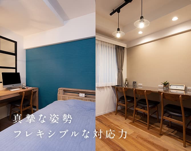 以前の住まいを売却する際は、別の会社にお願いしたのですが、直筆のお手紙をいただいて、次の購入の際はぜひお願いしようと思っておりました。好みのインテリア写真をストックしたりしながら数年越しでイメージをクリアにしていき、リノベーションを前提に中古物件を購入しました。リノベのパートナー選びで重視したのは、機能面の提案に強いことでした。コスモスイニシアは、新築物件で得られた顧客の声を反映して、使いやすさを追求しており、デザイン性だけではなく、機能面もしっかりと提案してくれたので安心して任せられました。