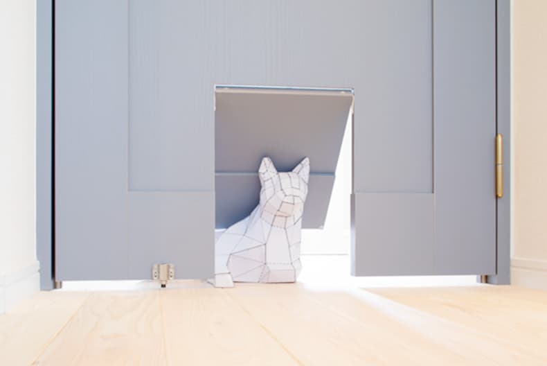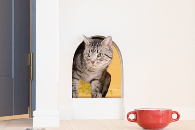 “ねこ”の専用スペースだけでなく、フロア全体を行き来することができるように、“ねこ”専用扉を設置しました。飼い主が不在の時も、自由気ままにゆったりと過ごすことができます。