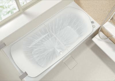 ⾷器洗い乾燥機や、浴室暖房乾燥機といった定番の時短設備はもちろん、浴室にはTOTO 製の「おそうじ浴槽」を採⽤。洗⾯室にはドライヤー機能のついた洗面所暖房機を設置し、キッチン⽔栓もタッチレス式を採⽤するなど、細やかな時短に配慮しました。