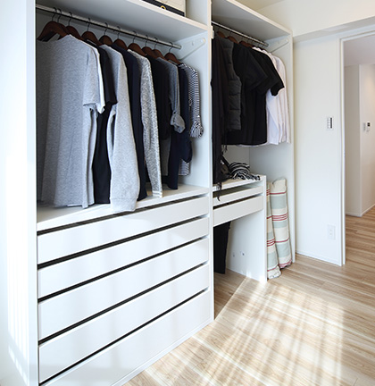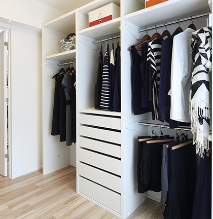 某収納の達人の話だと、「家の主役は住む人であってモノではありません。」でしたが、この家は全く無視しています。スミマセン。主役は服であり、アンバランスなほど豪華なドレスルーム。こんな家があってもいいでしょう。