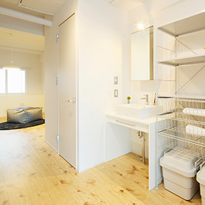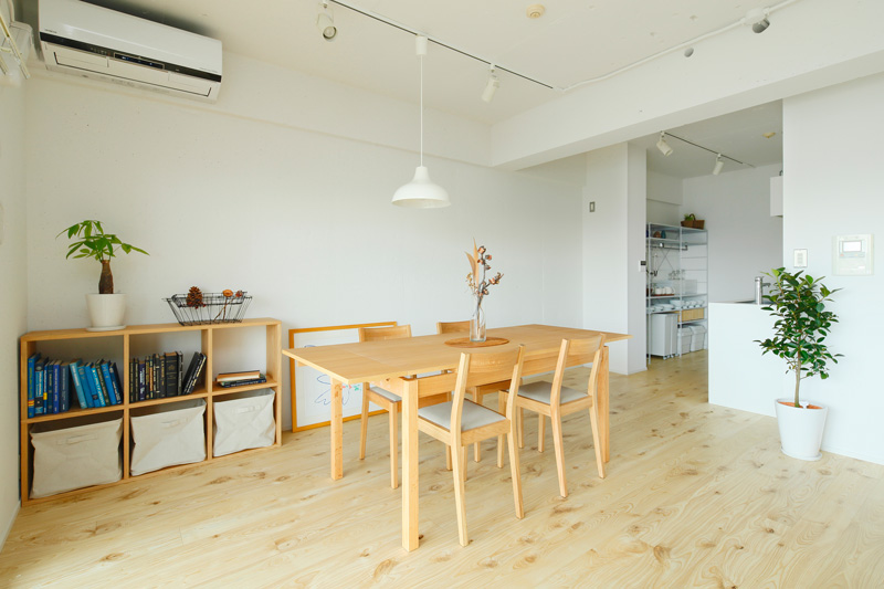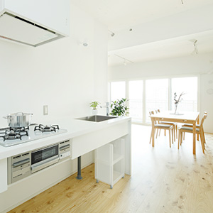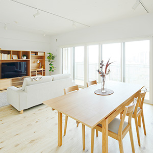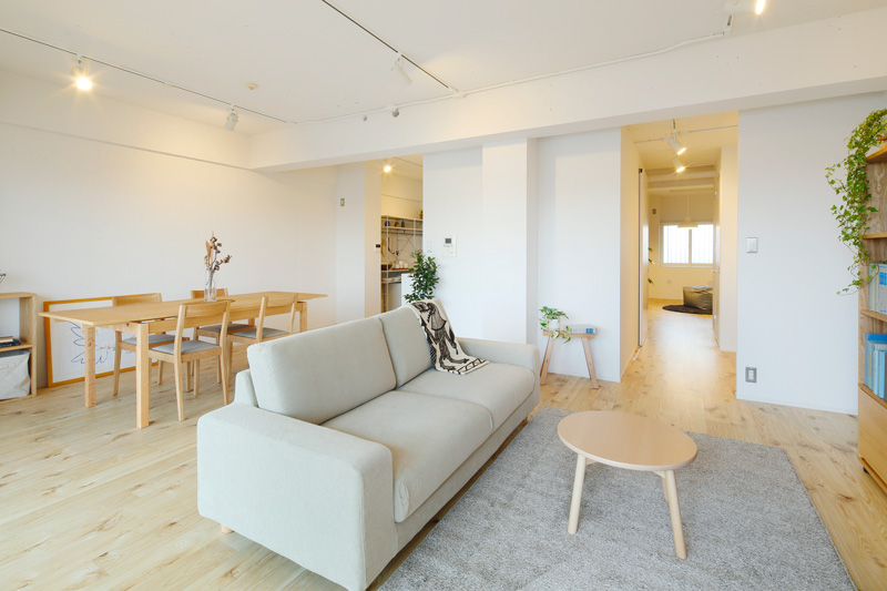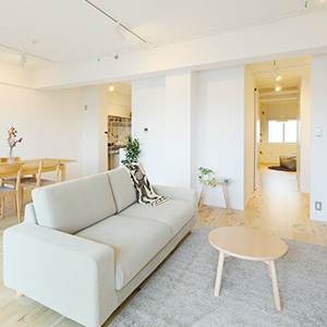 | リフォーム箇所 | 全室フローリング張替、全室壁面天井面塗装、キッチン新調、洗面化粧台新調、ユニットバス新調、トイレ新調、建具新調、洗濯パン新調、スイッチ・コンセント新調、シーリング新調、自動火災警報器新調、カーテンレール新調、インナーサッシ新規取付、給湯器交換 |