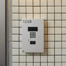 シンプルで洗練されたデザインのインターホンで来場者をお迎えします。