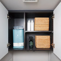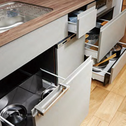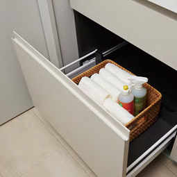 引き出しやすいスライド式。無駄なくたっぷり収納できます。