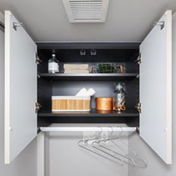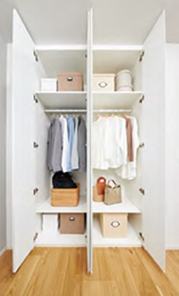 可動棚やハンガーパイプなどのアイテムを増やすことができる、可変性の高い収納です。