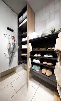※シューズクロゼットのあるタイプには「傘掛け」「スリッパ掛け」「小物入れ」の設置はありません。