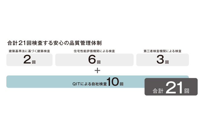 「品質管理」専任のスタッフを配置し、さらに社内外の検査員(インスペクター)が現場チェックを行うQIT(Quality Inspections that build Trust)を推進。マンションの建設の過程において重要なポイントを経験豊富な検査員が自らの目で品質管理します。