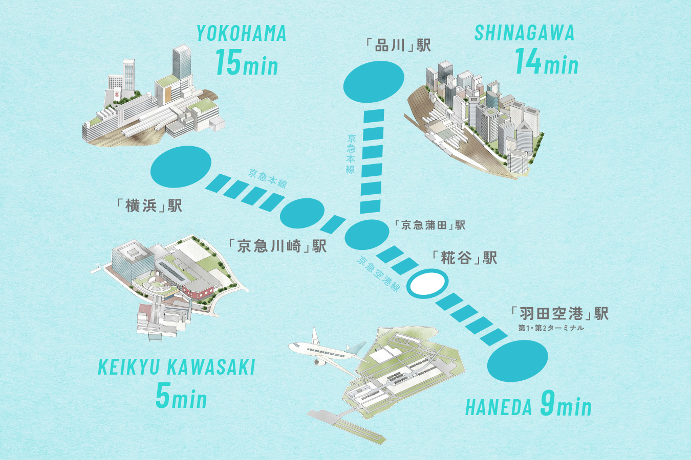 日本と世界につながる空の玄関口「羽田空港」まで3駅7分。