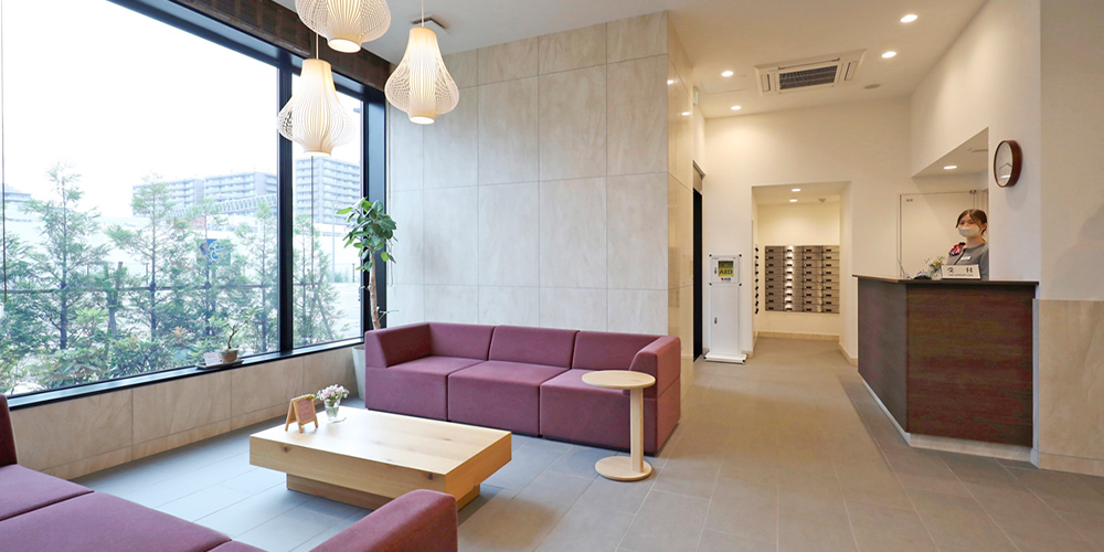 暖かな色調で設えた気負わないデザインのエントランスホールはここに住まう方たちの暮らしぶりを物語るかのようにゆったりと優しく温かな雰囲気を漂わせています。