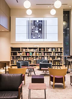 湯上りラウンジは大浴場を利用しない方でも気軽に立ち寄りご利用いただけます。ナチュラルな明るいインテリアは、訪れる人を爽やかな気分にしてくれます。気の置けない仲間とのたわいのないおしゃべりに花を咲かすもよし、“湯上り” の心が解き放たれるひと時を、ひとりゆったり味わうもよし。そんなときふと目に留まった本に手を伸ばせば新たな好奇心が目を覚ます心ふるえる瞬間に出会えるかもしれません。