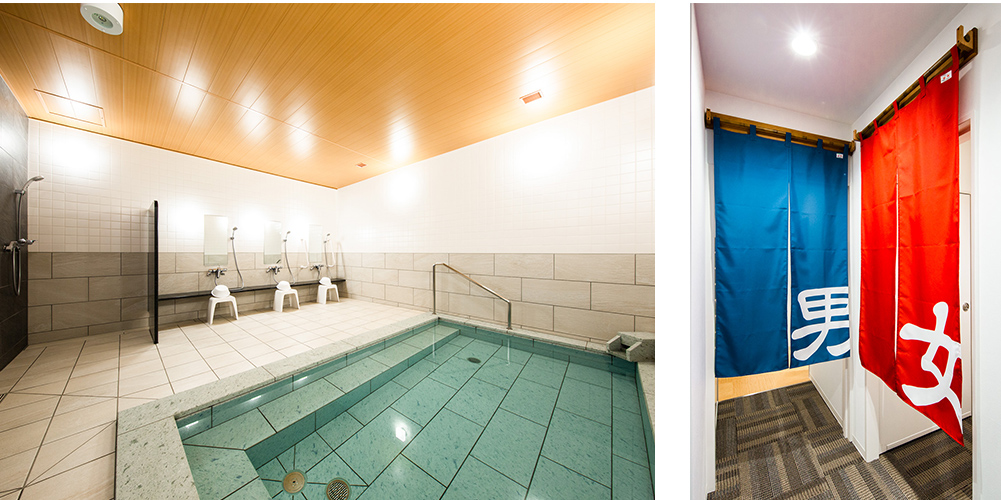 左:大浴場・男湯/右:大浴場入口(いずれも2022年7月撮影)