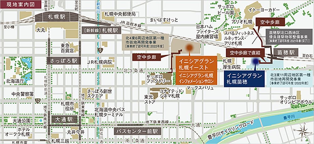 空中歩廊でJR「苗穂」駅へ直結、「札幌」駅へは1駅3分のスマートアクセス