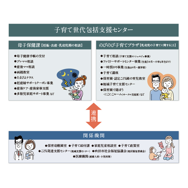 ※出典/吹田市ホームページ「子育て・教育(妊娠・出産‐吹田版ネウボラ(妊娠期から子育て期までを支援)」ページ