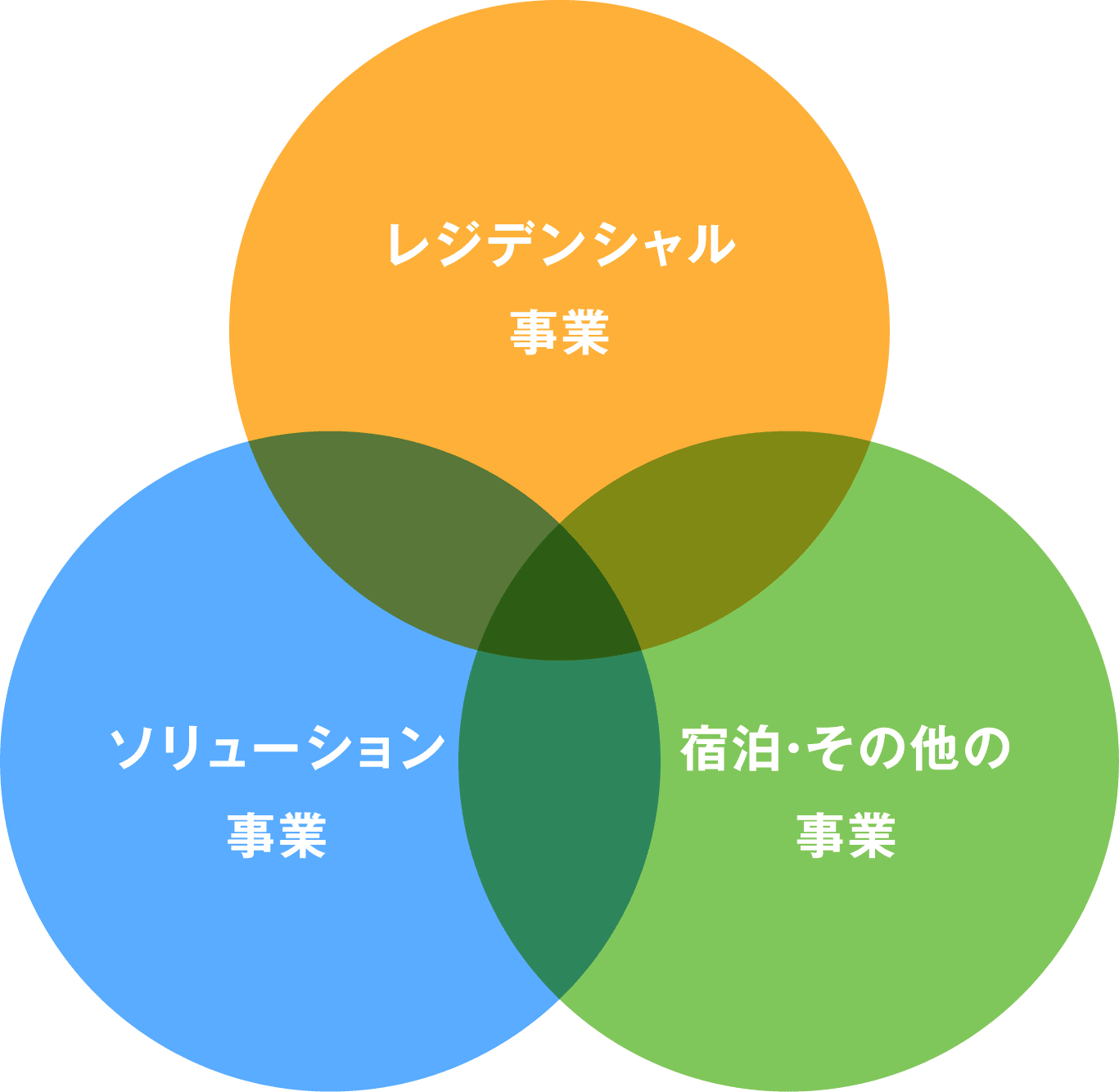 私たちコスモスイニシアは新築マンション・一戸建て、リノベーションマンションなどの住まいを提供するレジデンシャル事業、収益不動産の開発・仲介・賃貸管理などを行うソリューション事業、インバウンドをはじめとしたファミリー・グループでの中長期滞在に対応するアパートメントホテルの開発・運営を行う宿泊事業を中心に展開しています。それらの事業を日本の都市圏はもちろんのこと、一歩ずつ世界にも拡げ現在では、オーストラリアとベトナムにてレジデンシャル事業を、アメリカ(ダラス)にてソリューション事業を展開しております。
